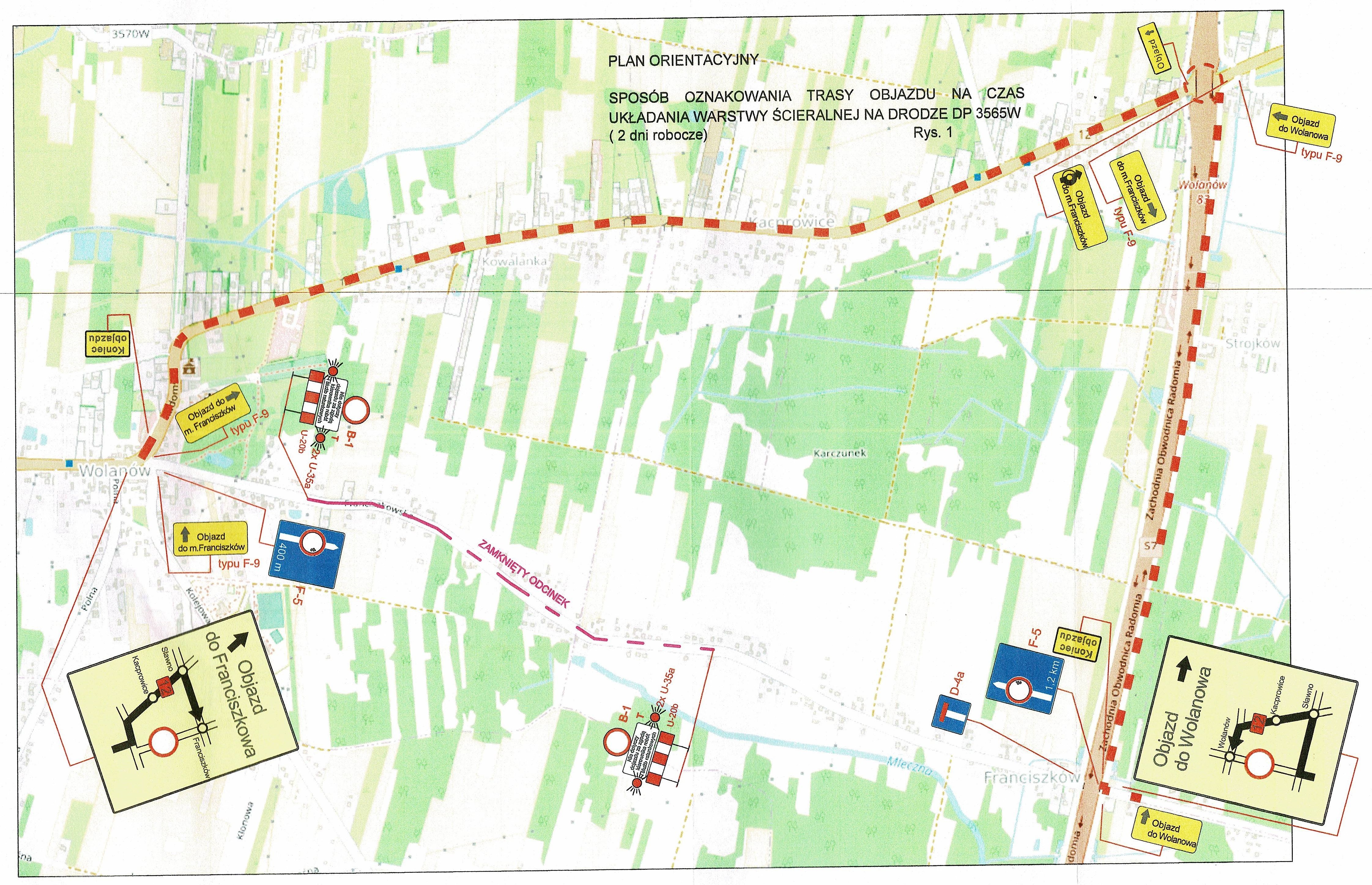 W załączeniu plan orientacyjny z zaznaczeniem trasy objazdu.